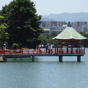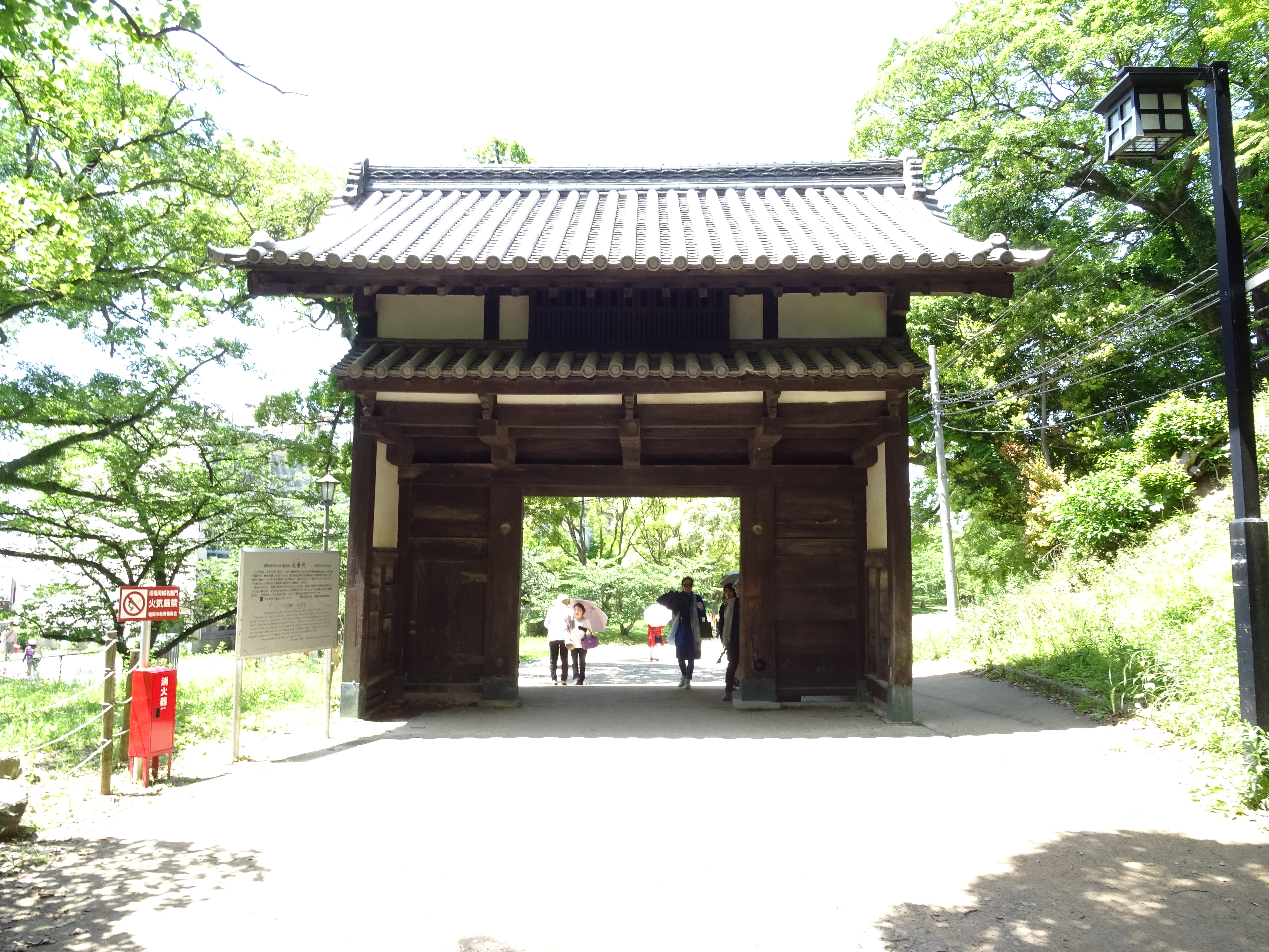Les ruines du château de Fukuoka se situes au milieu de la ville dans le parc Maizuru. C’est le château de Maizuru qui donna son nom au parc. Pendant la période d’Edo (1603-1867), le château de Fukuoka était le plus grand château sur Kyushu. Mais il a été presque complètement démoli après la restauration de Meiji comme symbole non désiré du passé féodal. De nos jours, il ne reste que des murs en ruine et quelques tourelles. Par conséquent, le parc attire les visiteurs avec des sentiers pédestres et quelques belvédères.