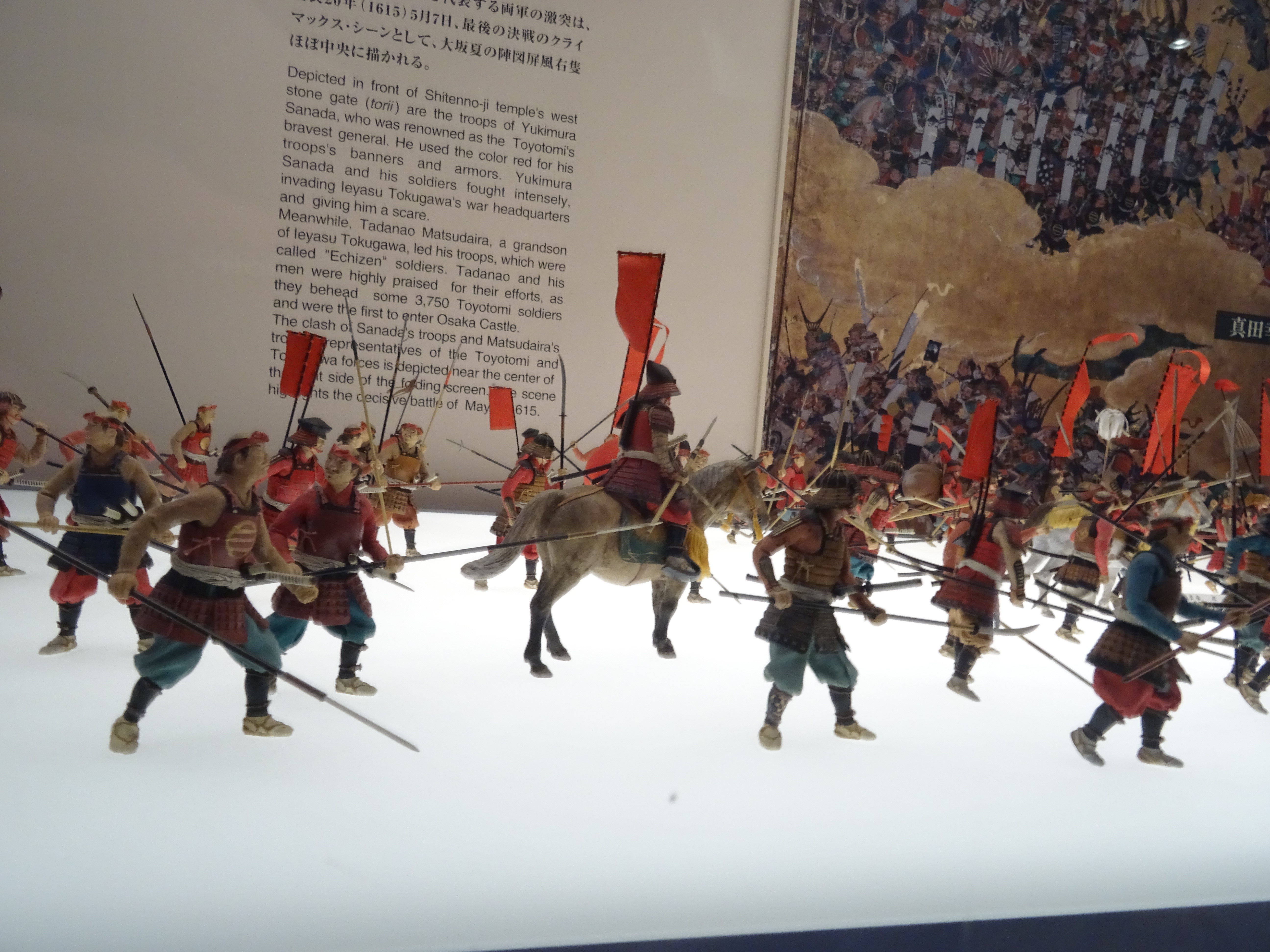 Cependant, quelques années après la mort de Hideyoshi, les troupes Tokugawa attaquèrent et détruisirent le château et terminèrent la lignée Toyotomi en 1615. Le château d’Osaka fut reconstruit par Tokugawa Hidetada dans les années 1620, mais sa tour principale fut frappée par un éclair en 1665 et incendiée.