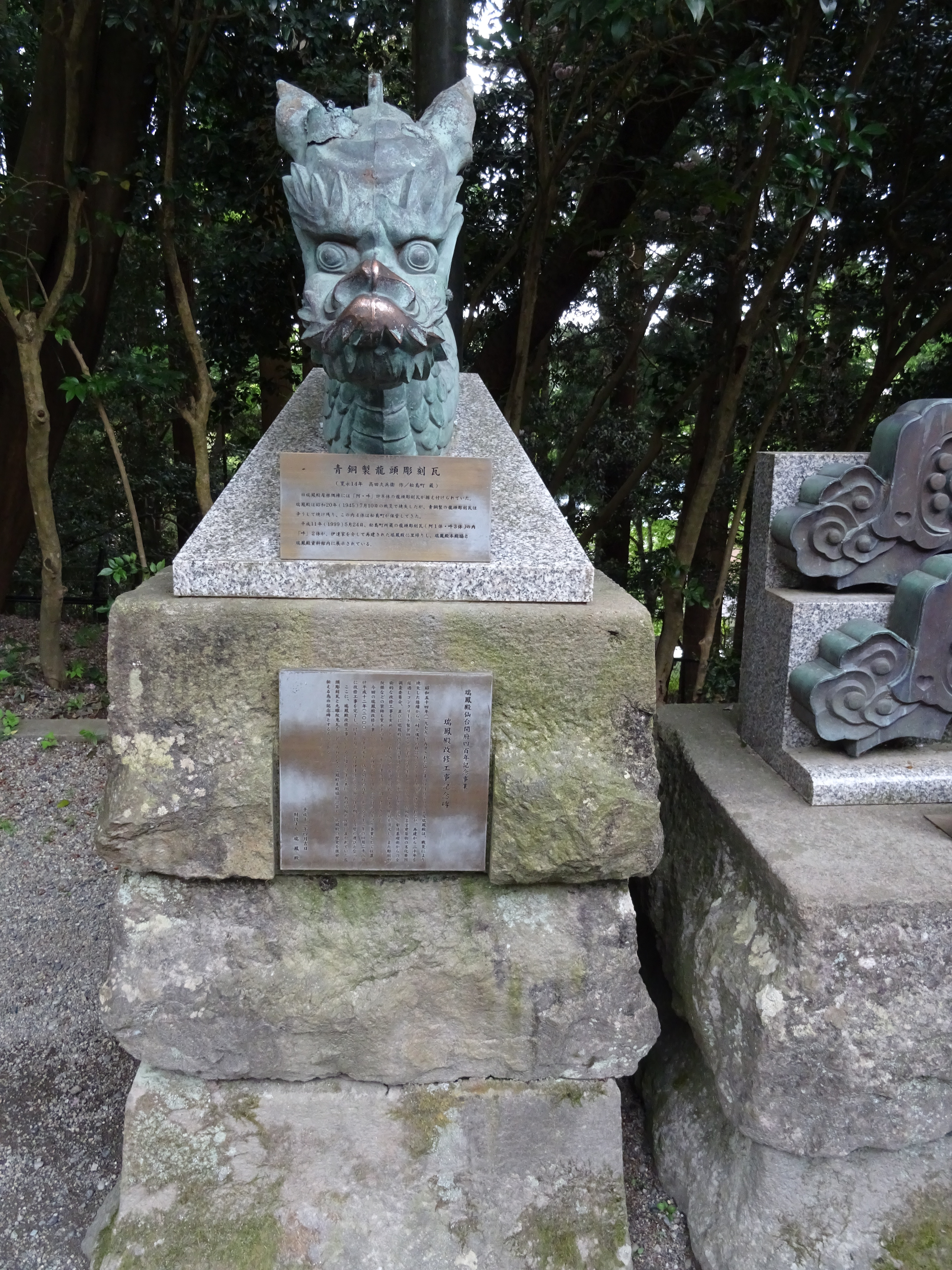 Tout d’abord, le Zuihō-den abrite la dépouille de Date Masamune (1567-1636), daimyō fondateur du domaine de Sendai. Désigné trésor national en 1931, il est détruit en 1945, reconstruit en 1979 puis restauré en 2001 afin de ressembler davantage au mausolée d’origine.